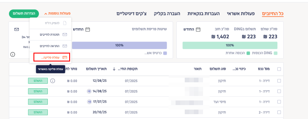 במקרה זה, הדיירים יחויבו בסכום התשלום בתוספת עמלת הסליקה.