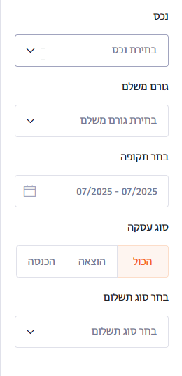 בחירת טווח תאריכים (חודש/שנה או טווח מותאם אישית).
