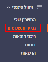 לאחר התחברותכם למערכת, לחצו על 'ניהול פיננסי' -> גבייה ותשלומים.