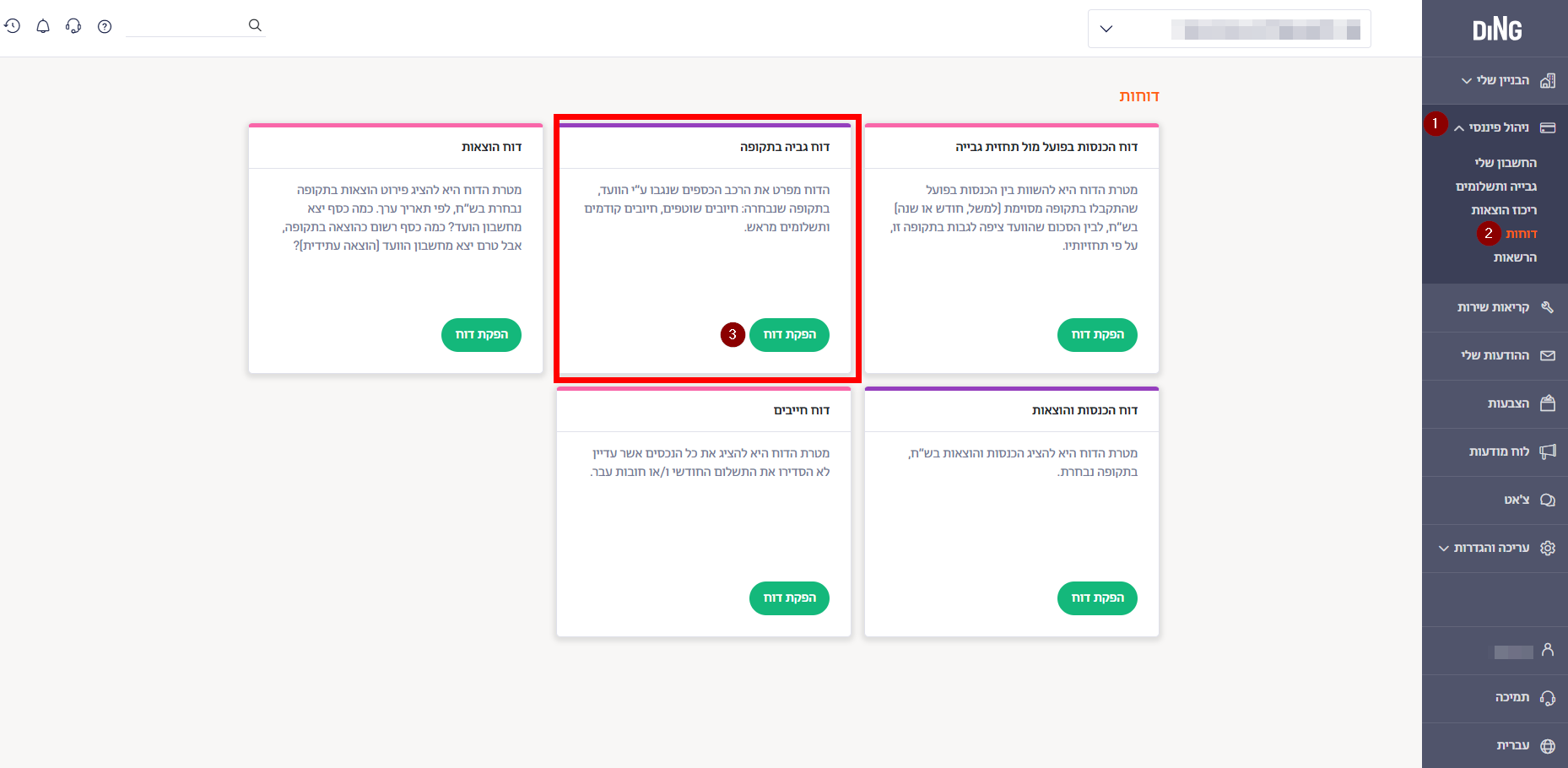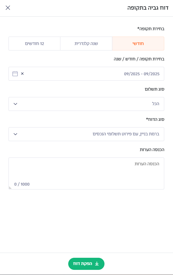 הפקת דוח תקופתי - דוח גביה בתקופה