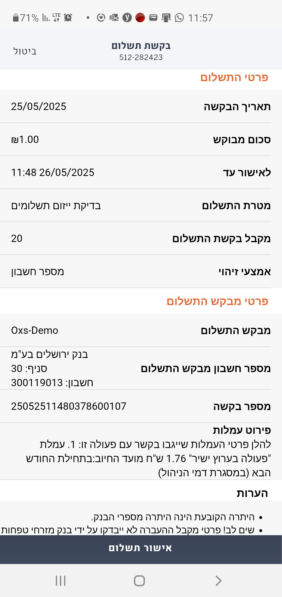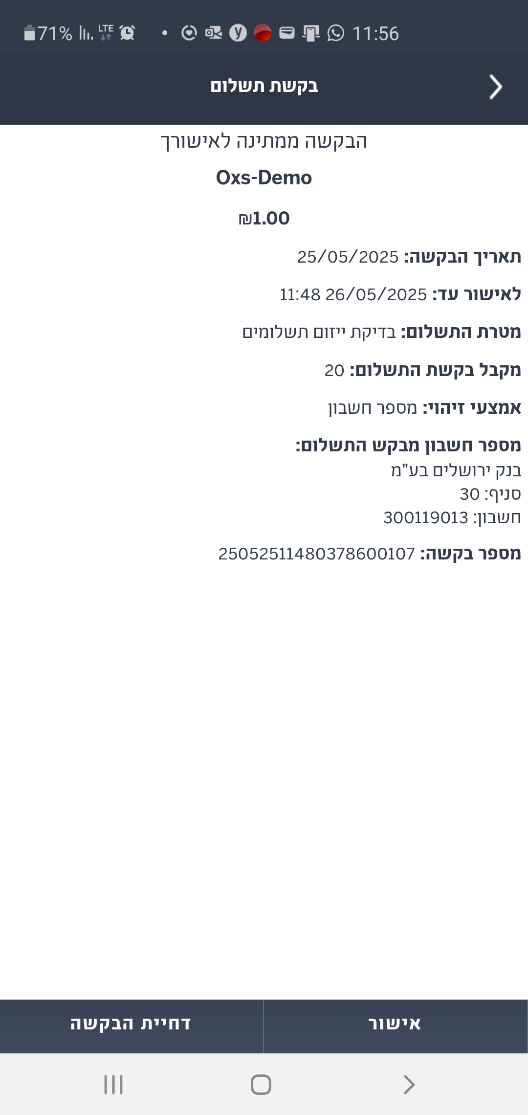 יפתח בפניכם מסך המרכז את פרטי בקשת התשלום,