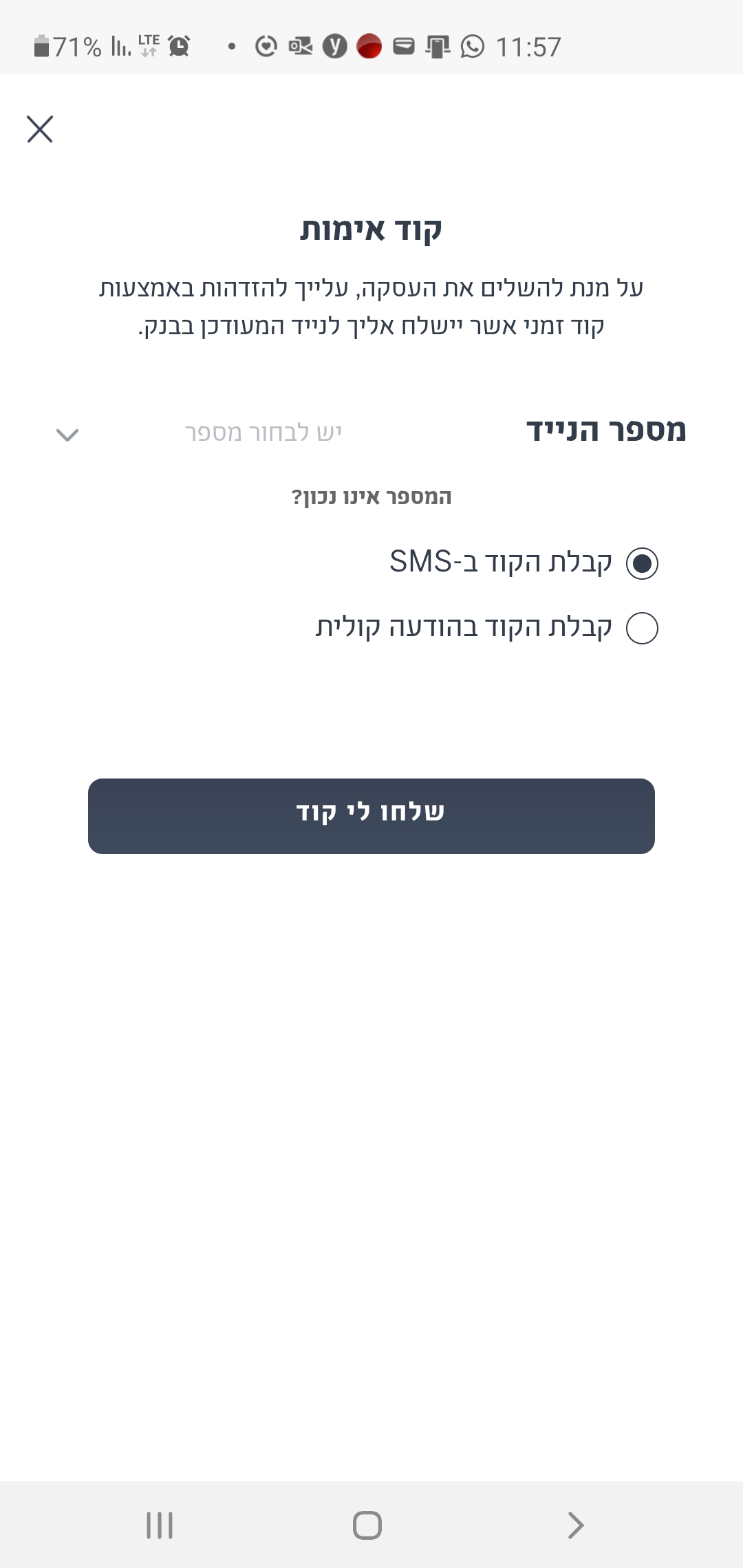 בחרו בדרך הנוחה ביותר עבורכם לקבל את קוד האימות.