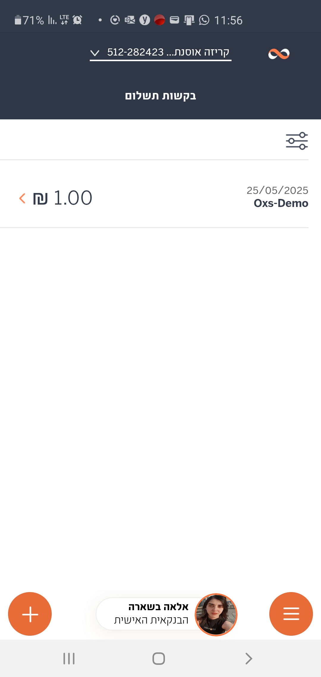 לחצו על שורת בקשת התשלום אותה תרצו לשלם.